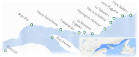 The tour usually comprises 21 stops at the following ports: Sept-Îles, Port-Menier, Havre-St-Pierre, Natashquan, Kegaska, La Romaine, Harrington-Harbour, Tête-à-la-Baleine, La Tabatière, Saint-Augustin and Blanc-Sablon. While some ports will be visited twice (downstream/upstream), the number of stops and length of stops may vary according to weather conditions.