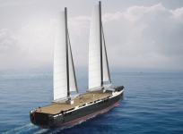 Origin is a “ro-ro” (roll on – roll off) sailing cargo ship using the wind as main propulsion as well as auxiliary diesel-electric propulsion. Equipped with two Solidsail rigs (designed by Chantiers de l’Atlantique) and anti-drift plans (designed by Fouré Lagadec), Origin is made to be propelled mainly by the wind, while respecting its sailing times. This equipment can be folded down to access most ports.