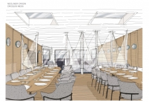 The dining room (about 75 m²): Three hot meals are served each day and included in your stay. Share these gourmet moments with the crew in a warm and authentic atmosphere.